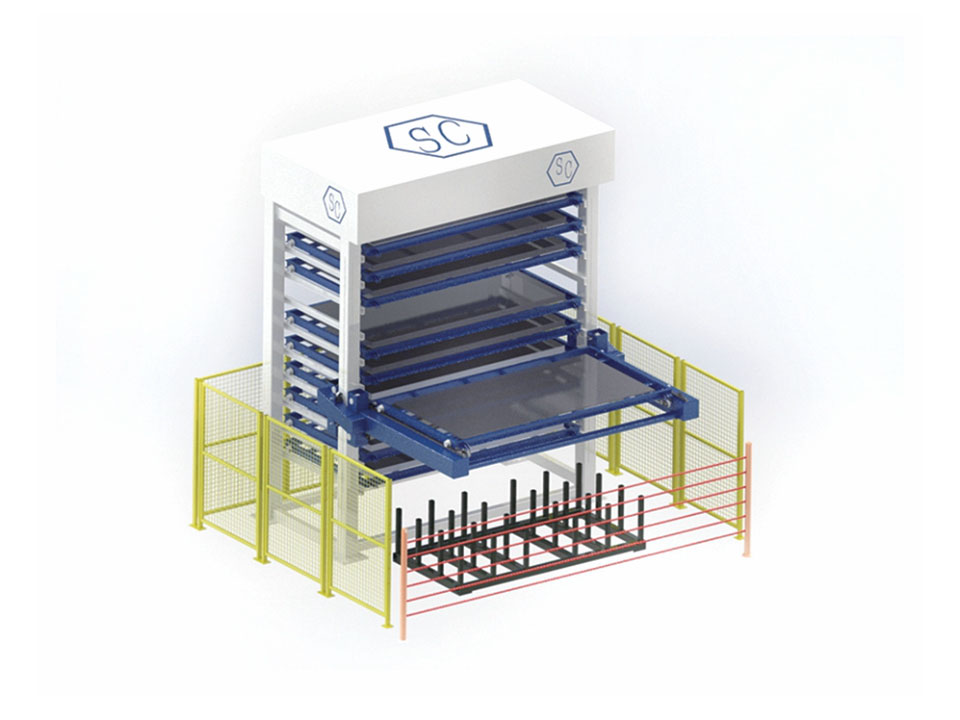 鈑金智能儲料庫用于分類儲存各類金屬板材,通過電腦控制板材的進出、選取各層板材,與企業的MES系統相連接,為